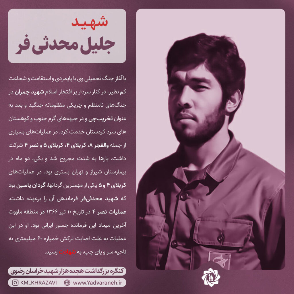 متولد: ۱ شهریور ۱۳۴۲محل تولد: مشهدتاریخ شهادت: ۱۰ تیرماه ۱۳۶۶محل شهادت: ماووت