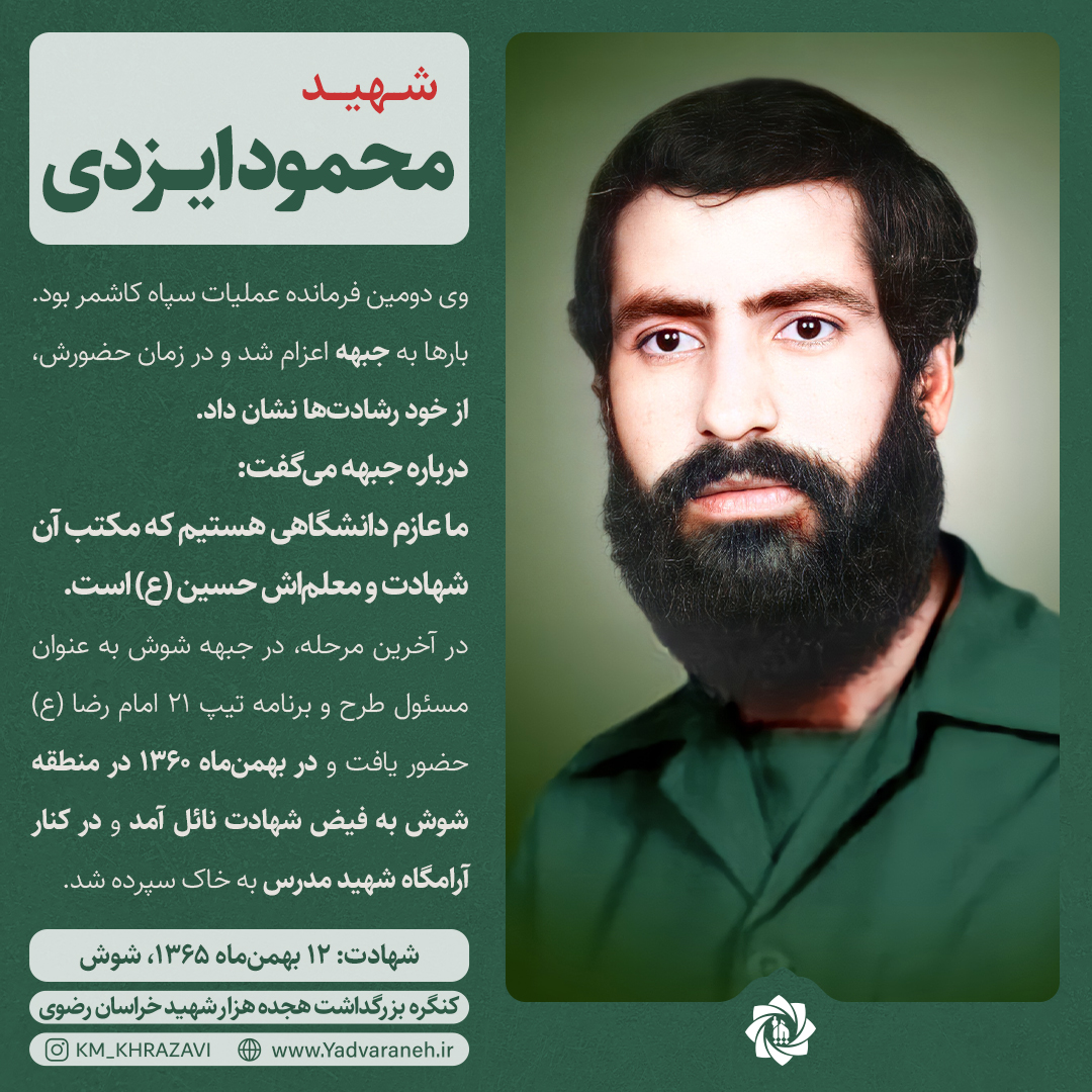 متولد: ۲ بهمنماه ۱۳۳۳محل تولد: مشهدتاریخ شهادت: ۱۳ بهمنماه ۱۳۶۵محل شهادت: شوش