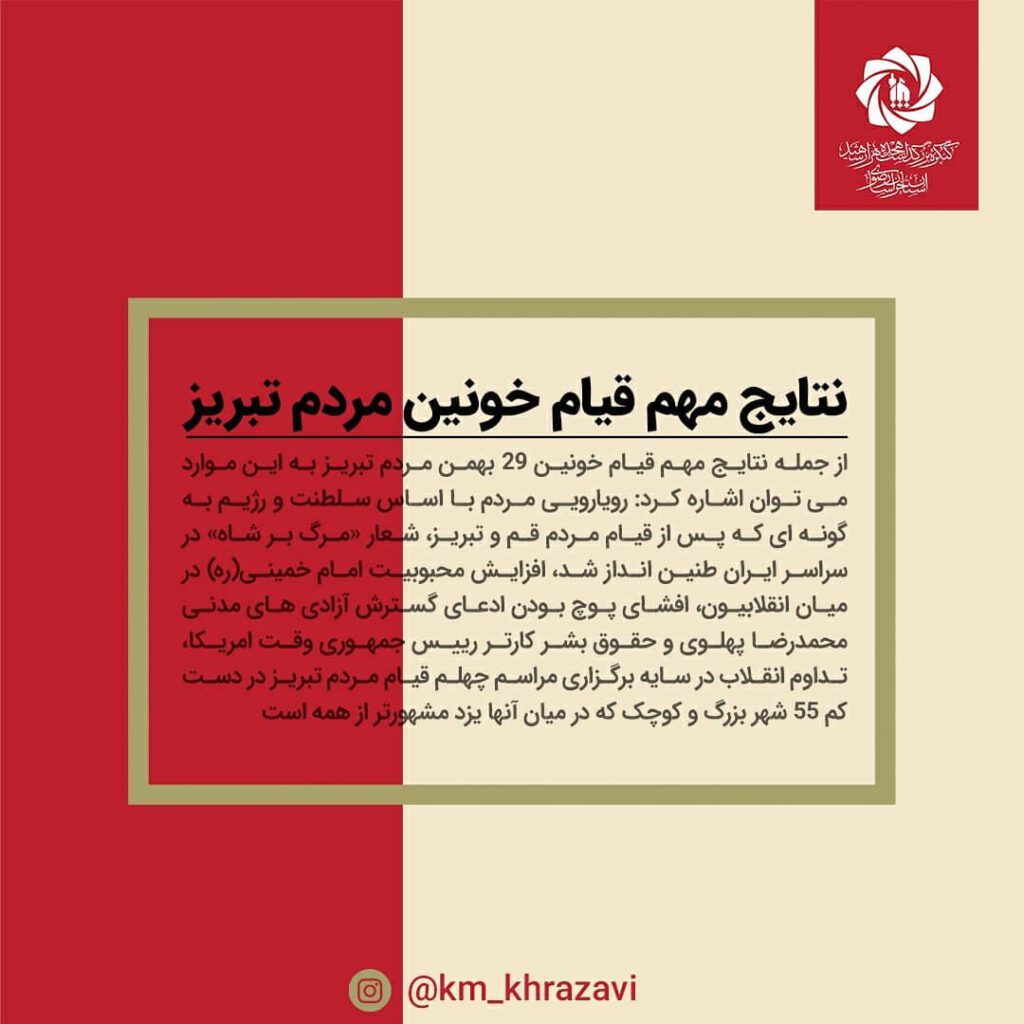 قیام تاریخی تبریز ثابت کرد آن چیزی که آذری زبان را با عرب اهوازی و کرد و فارس هم صدا و متحد ساخته اسلام است، نه شخص محمدرضا پهلوی که مدعی بود که مظهر وحدت ملی است. به هرترتیب آن طور که از اسناد برمیآید قیام مردم تبریز تأثیر بسیار شگرفی در پیشبرد اهداف نهضت اسلامی و تضعیف پایههای رژیم پهلوی داشت به طوری که پس از آن زنجیرههای چهلمهای مداوم در سراسر کشور منتهی به سقوط رژیم ۲۵۰۰ ساله شاهنشاهی شد و از این جهت است که میتوان از قیام ۲۹ بهمن تبریز به عنوان قیام سرنوشتساز یاد کرد.