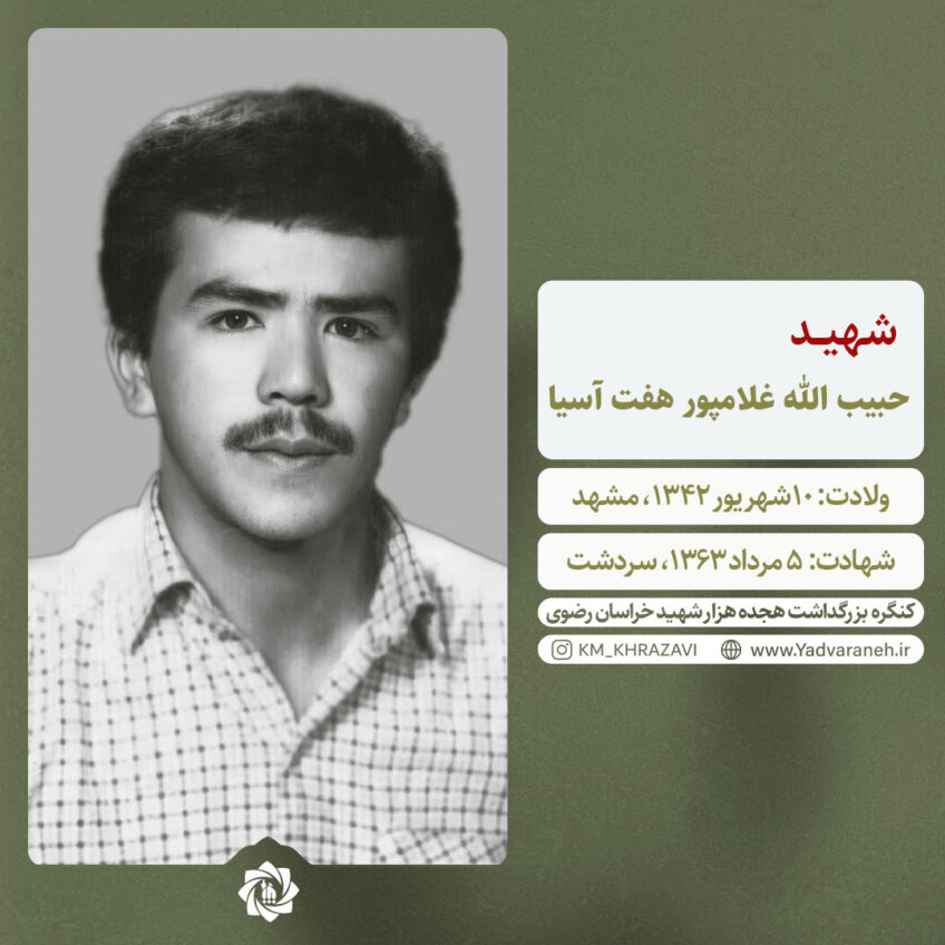 متولد: ۲فروردین ماه ۱۳۳۴محل تولد: مشهدتاریخ شهادت: ۷ مردادماه ۱۳۶۱محل شهادت: کامیاران